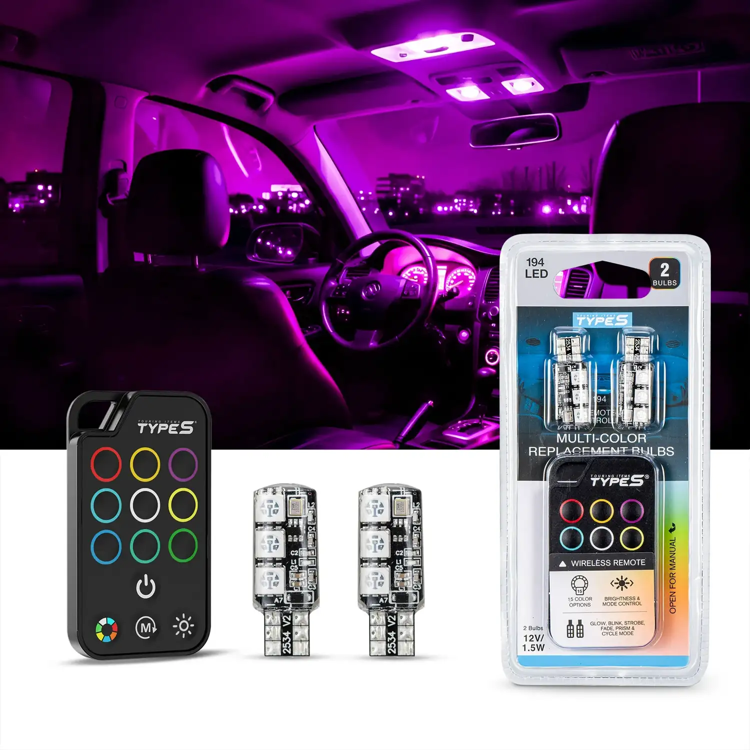 TYPE S – Remote-Controlled 194_T10 Multicolor LED Mini Bulb Set
